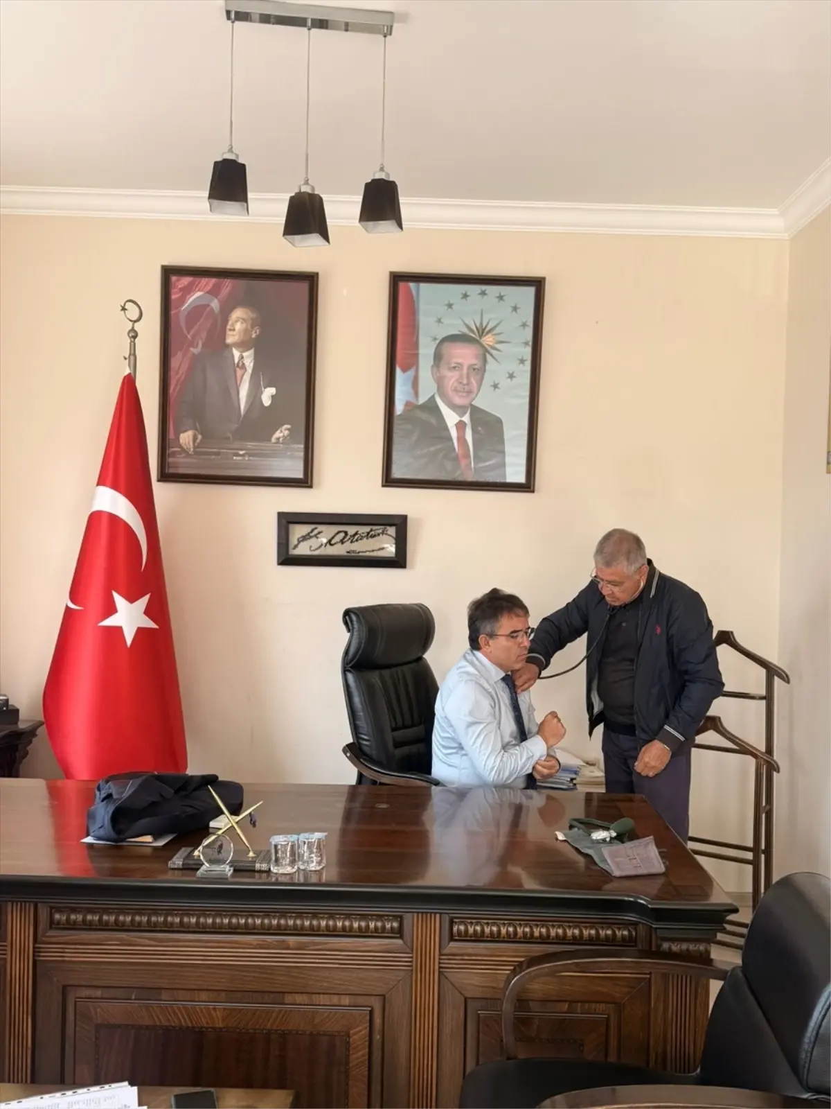 Kaymakamlıktan yapılan açıklamada, kamu kurumlarının iş sağlığı ve güvenliği hizmeti alma zorunluluğu çerçevesinde, kurumda görev yapan personelin periyodik sağlık kontrollerinin gerçekleştirildiği bildirildi.